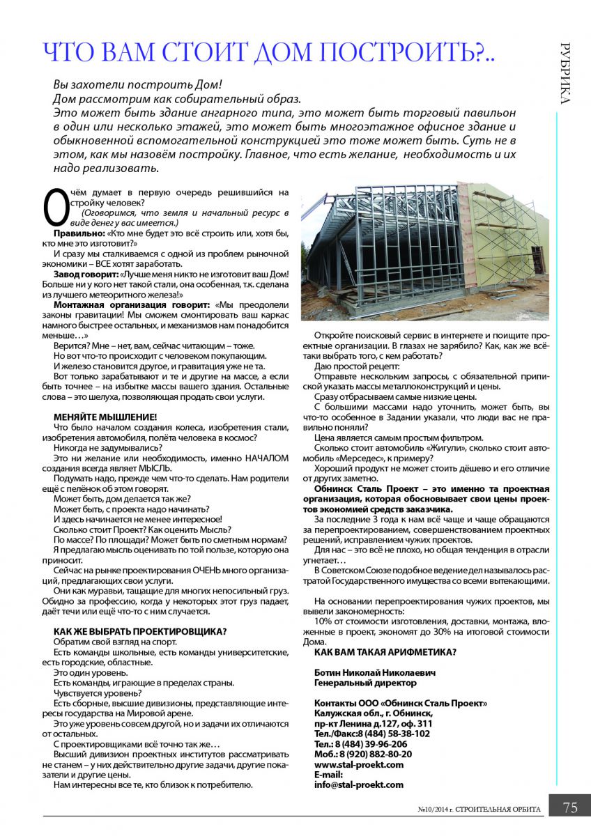 Публикация в журнале "Строительная Орбита". Выпуск №10, 2014 г.